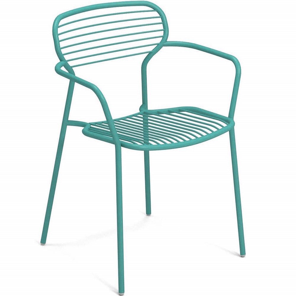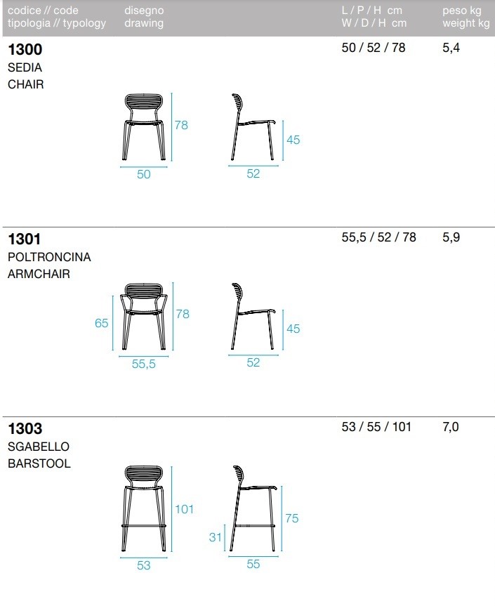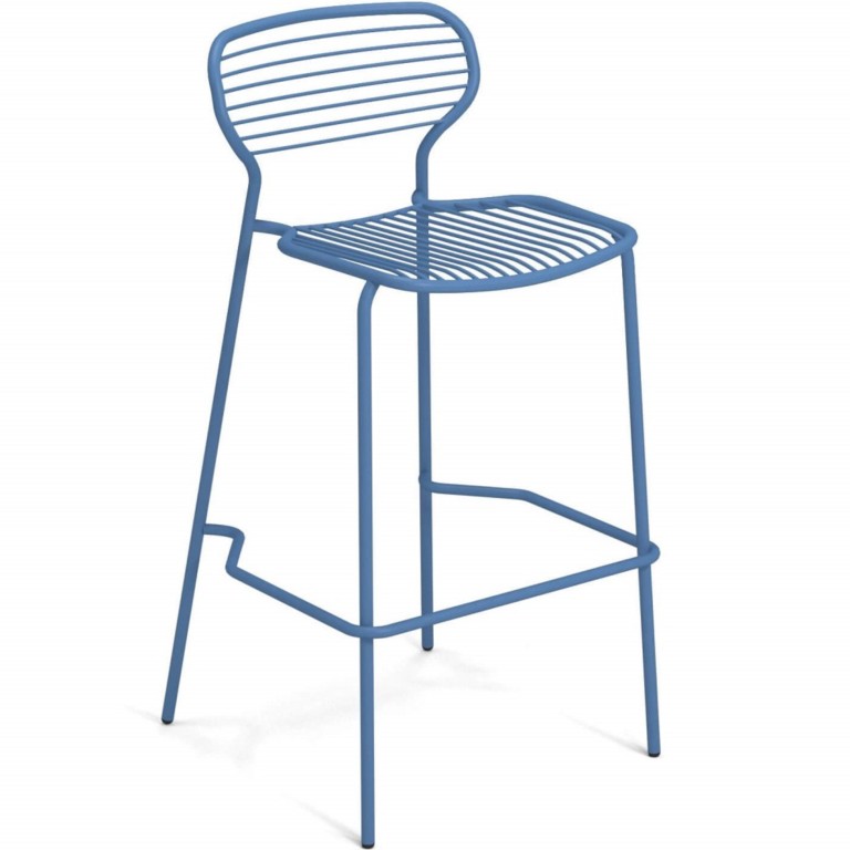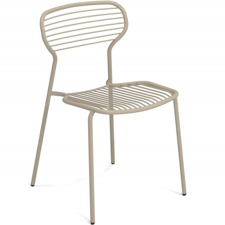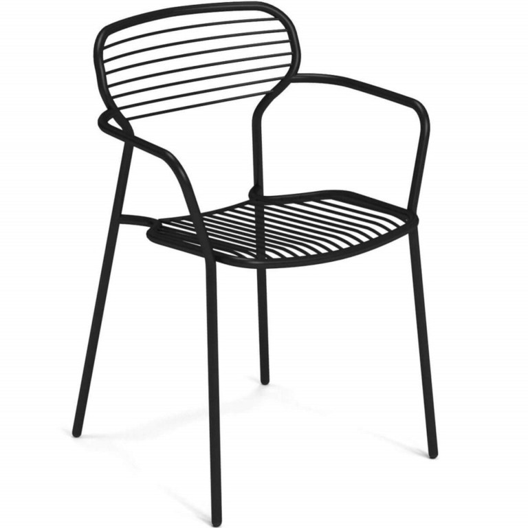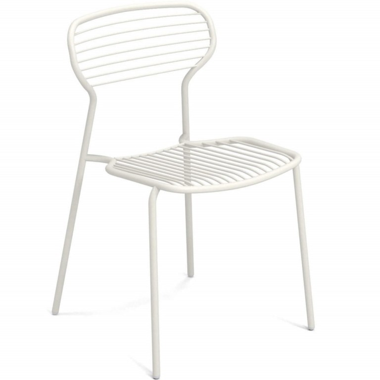 Apero redesigns the classic German wooden seat and is reinterpreted in a contemporary key. Thanks to EMU's skilful skill in metalworking, the seat and backrest made in metal rod, offer visual lightness and the silhouette appears continuous and subtle, in a play of light between horizontal and vertical lines that projects a curious striped pattern and paintings on the surfaces. Its minimal and graphic appearance allows it to adapt to any type of environment and style, responding to any functional need. The collection consists of a chair, an armchair and a stool.